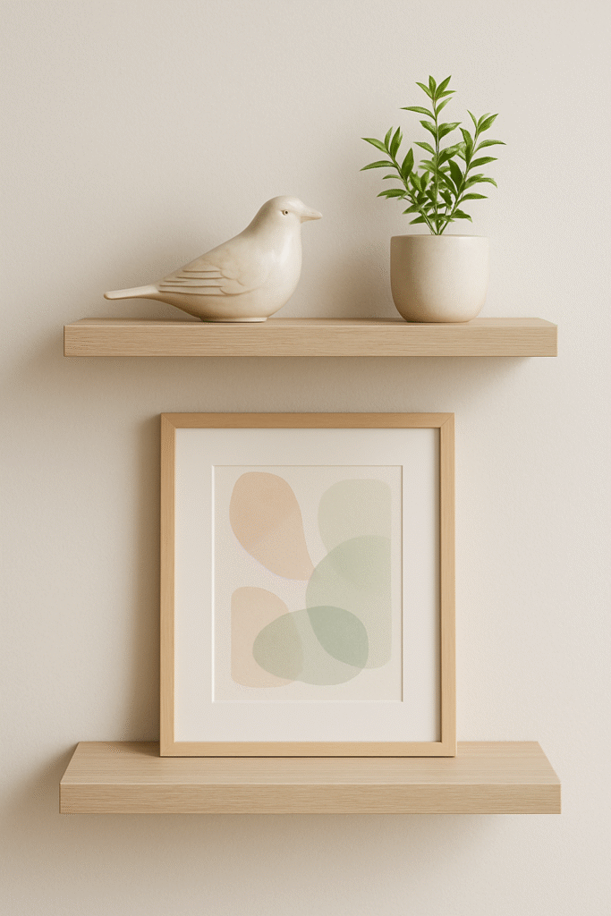 Floating shelves in a modern home provide a sleek, minimal backdrop for decorative accents. Place a few Jingdezhen ceramic figurines—such as a small Buddha statue or animal figurine—amid books, succulents, and framed prints. The smooth porcelain surfaces and delicate brushwork contrast beautifully against raw wood or white shelves.