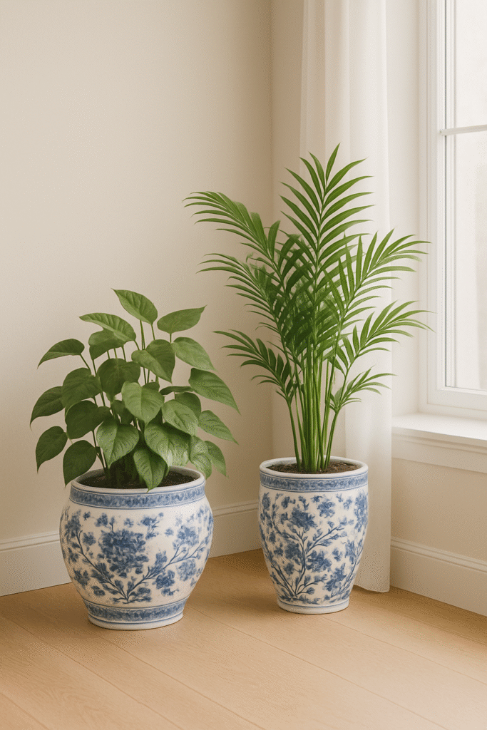 5. Pair Porcelain Planters with Greenery for a Natural Touch