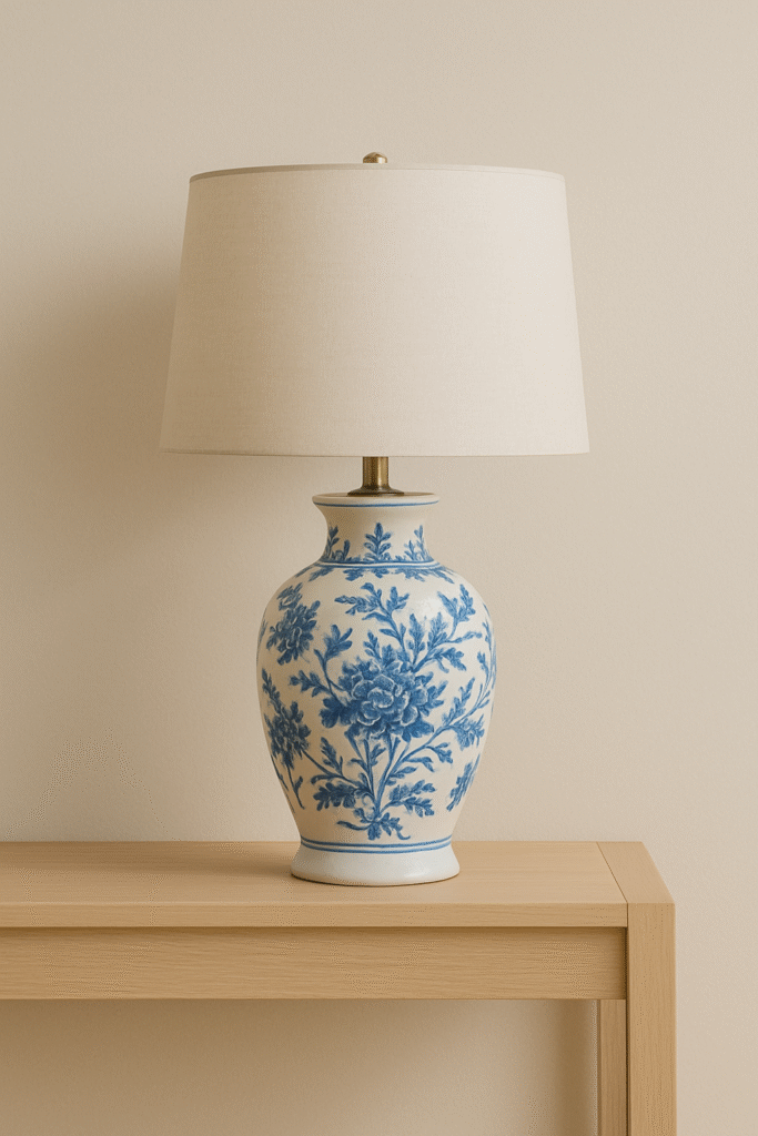 Swap out a standard lamp base for a blue-and-white porcelain lamp to infuse traditional elegance into an entryway or living room console. The lamp’s gentle glow accentuates the porcelain’s intricate hand-painted motifs—whether classic floral or abstract brushstrokes—while complementing contemporary décor elements.